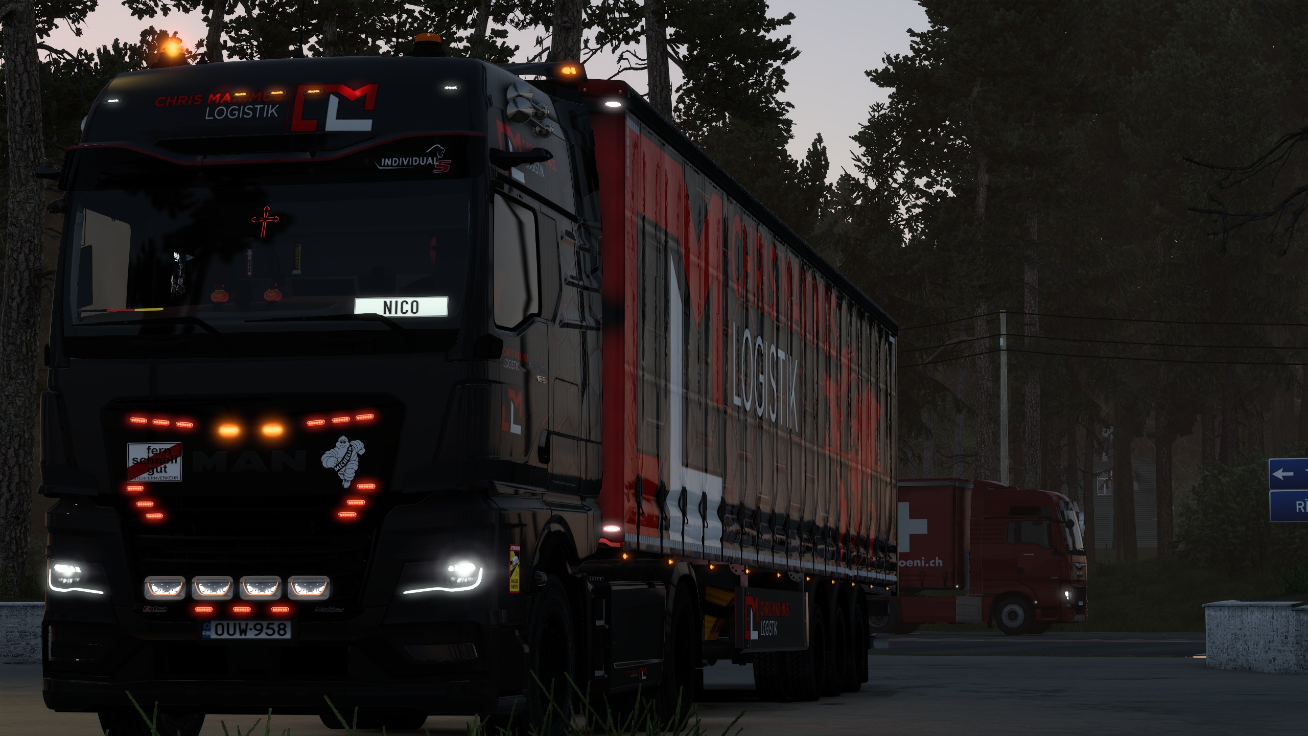 MARCEL AUS MONNEM fährt gerade mit 13 Tonnen Holzbalken von Falun nach Mannheim